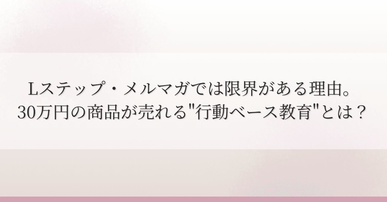 Lステップ・メルマガでは限界がある理由。30万円の商品が売れる”行動ベース教育”とは?